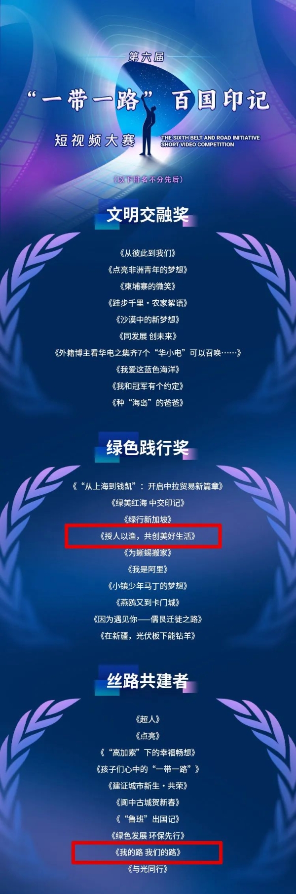 近日,由中國公共外交協(xié)會主辦,國務院國資委新聞中心等單位協(xié)辦的第六屆“一帶一路”百國印記短視頻大賽獲獎名單正式揭曉,經過激烈角逐,共有108部作品脫穎而出,中國兵器工業(yè)集團北方公司兩部作品獲獎,其中,北方礦業(yè)《授人以漁,共創(chuàng)美好生活》榮獲“綠色踐行獎”,北方國際《我的路 我們的路》榮獲“絲路共建者”。
