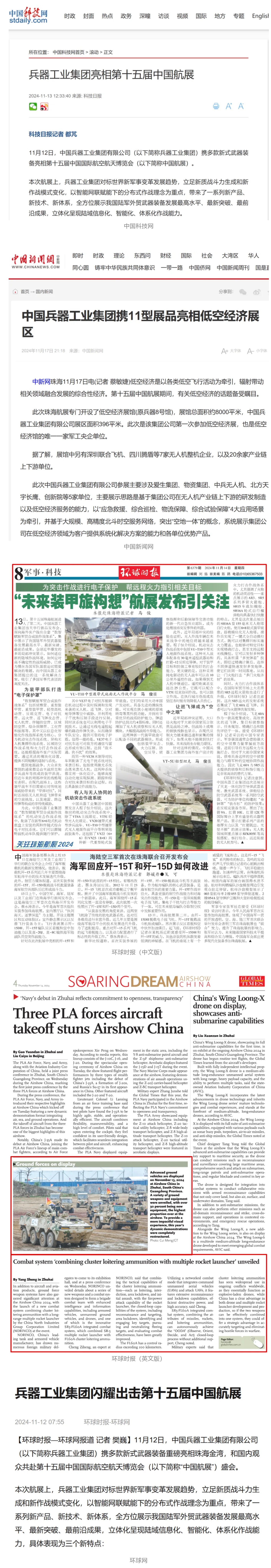 備受矚目!各大媒體廣泛報道兵器工業(yè)集團參展第十五屆中國航展