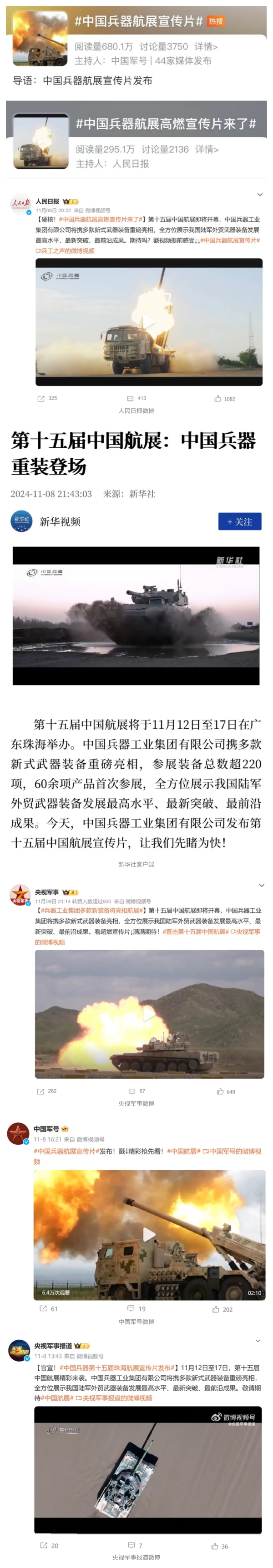 新華社、央視新聞、中央廣播電視總臺中國之聲、央視軍事、中國軍視網(wǎng)、廣東廣播電視臺等媒體以及國家國防科工局、國資小新等到兵器工業(yè)集團地面動態(tài)演示區(qū)、中國兵器館進行了直播。