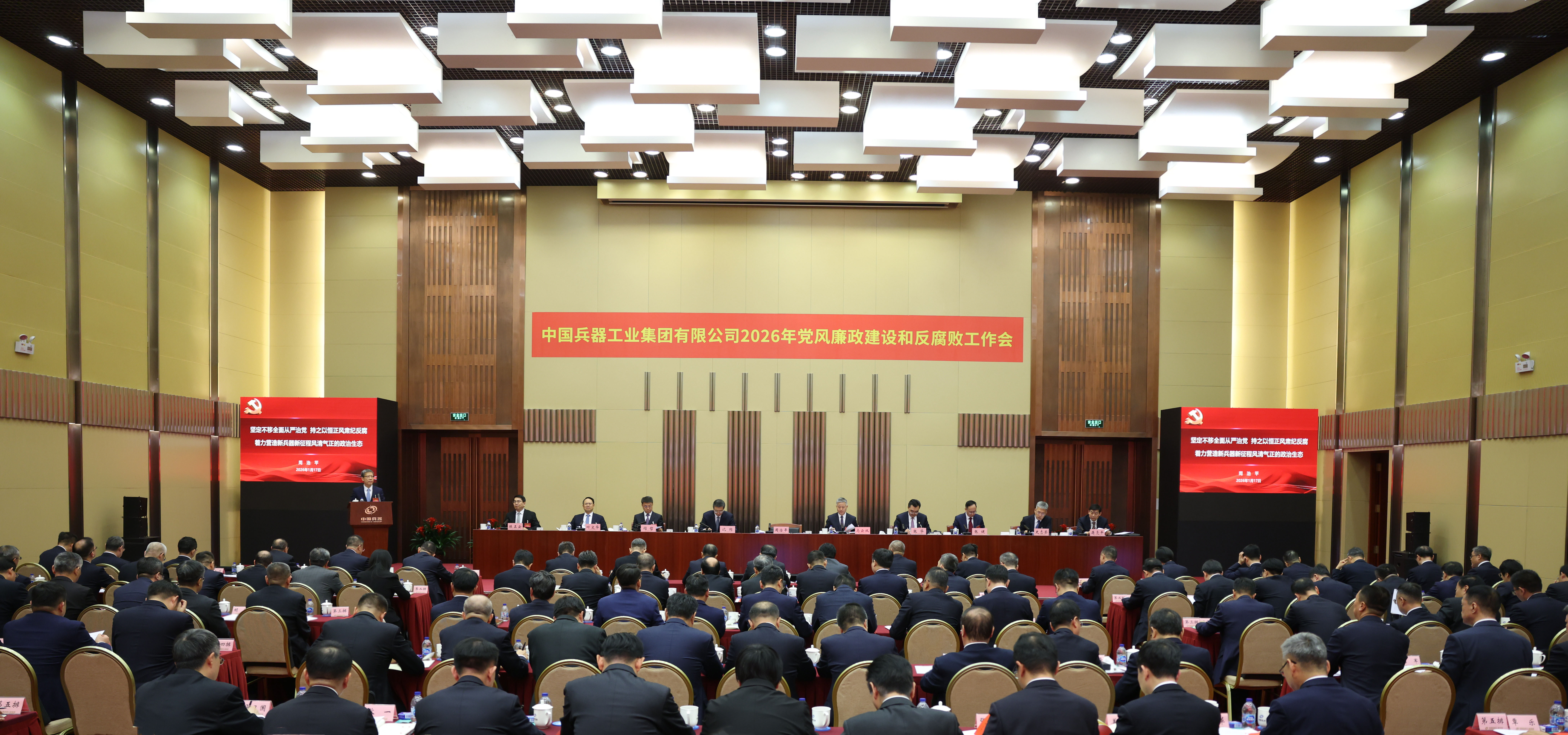 1月17日,中國兵器工業(yè)集團有限公司召開2026年黨風廉政建設和反腐敗工作會議,會議以習近平新時代中國特色社會主義思想為指導,深入學習貫徹黨的二十大和二十屆四中全會精神,全面貫徹落實二十屆中央紀委五次全會精神,總結工作、部署任務,以更高標準、更實舉措推進全面從嚴治黨,為實現(xiàn)集團公司“十五五”時期目標任務提供堅強保障。集團公司黨組書記、董事長周治平作了《堅定不移全面從嚴治黨,持之以恒正風肅紀反腐,著力營造新兵器新征程風清氣正的政治生態(tài)》的講話,并與集團公司各部門、各子集團和直管單位簽訂《黨風廉政責任書》。駐集團公司紀檢監(jiān)察組組長、集團公司黨組成員陳正云傳達了二十屆中央紀委五次全會精神,通報了駐集團公司紀檢監(jiān)察組2025年重點工作和查處典型案件暴露出來的問題并提出意見要求。集團公司總經(jīng)理、黨組副書記馬云雙主持會議。
