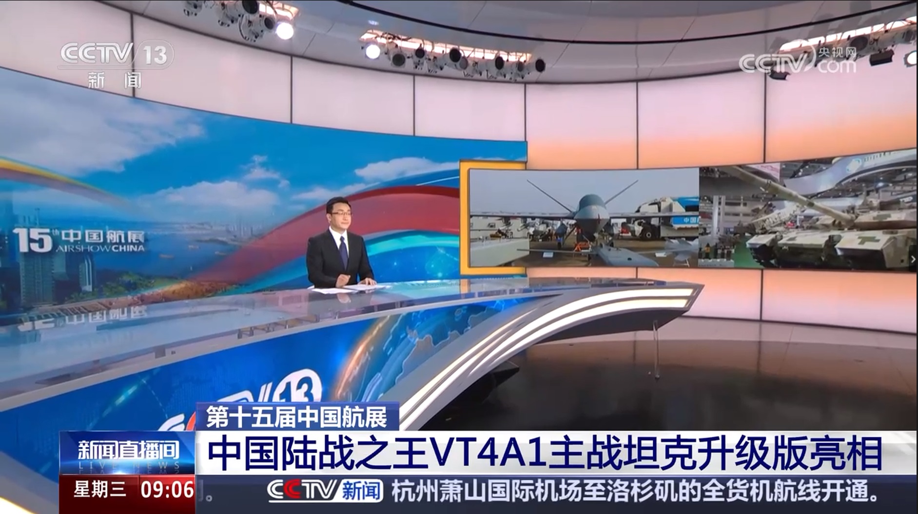[新聞直播間]第十五屆中國(guó)航展 中國(guó)陸戰(zhàn)之王VT4A1主戰(zhàn)坦克升級(jí)版亮相
